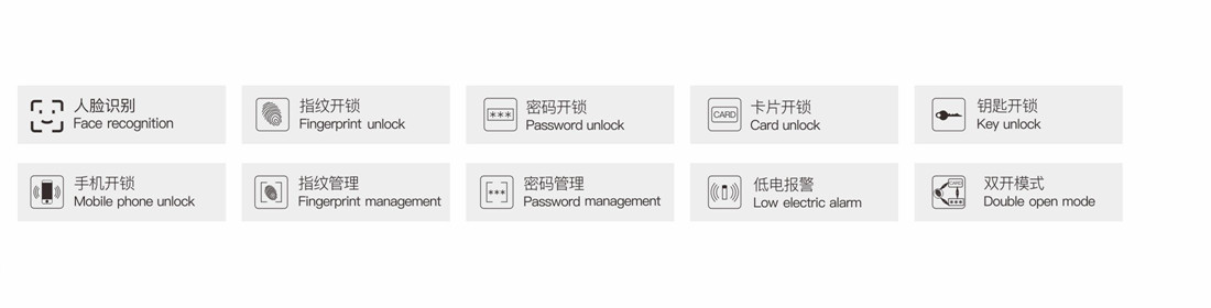 室外开锁:人脸、掌纹、指纹、二维码、IC卡、时效密码、机械钥匙